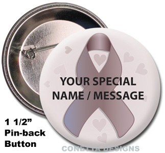Gray Diabetes Customizable Name Awareness Pin-back Buttons, fully assembled. Perfect for Diabetes Awareness - or any Gray awareness event.